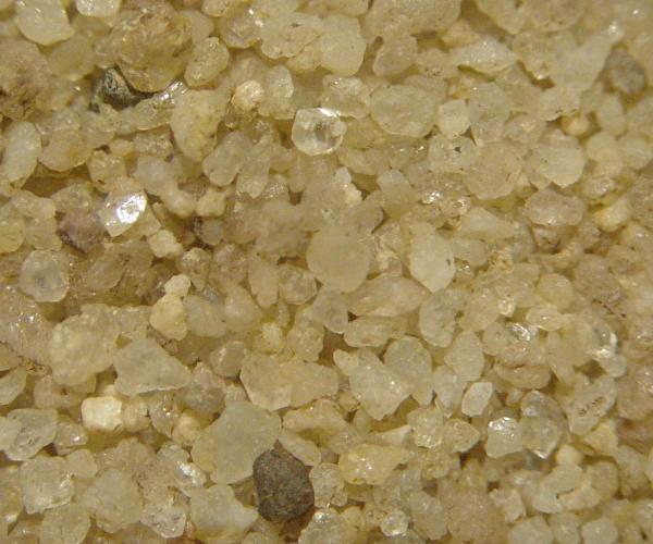 des facettes de clivage. D'autres grains sont plus arrondis. Ce sable